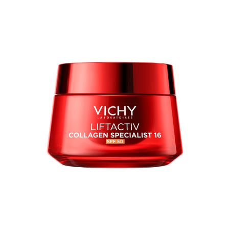 - Krem Vichy Liftactiv Collagen Specialist 16 SPF50 z ekskluzywną technologią Co-Bonding, zawierający ramnozę, peptydy i Maitake, wzmacnia i wiąże ze sobą różne typy kolagenu.